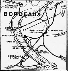 Sur la meme rive, la gare de Bordeaux Bastide et Bordeaux Passerelle appartenaient au PO, tandis que sur la rive opposée on trouvait la gare de Bordeaux Saint Jean du réseau du Midi, celle de Bordeaux Saint Louis, Bordeaux Brienne..