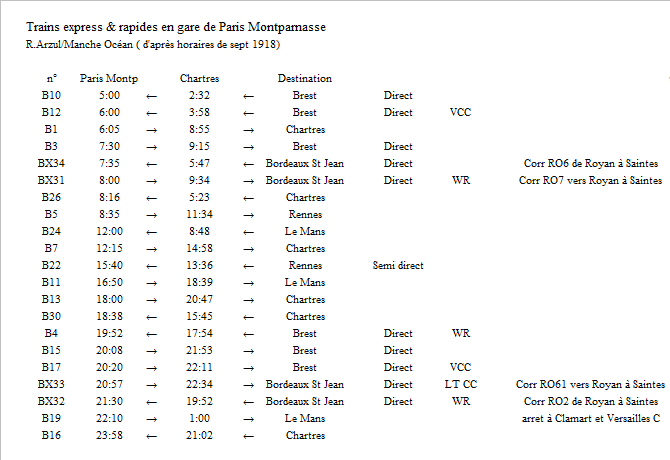 C'est au total 21 trains express et rapides qui fréquentaient la gare Montparnasse à cette époque: