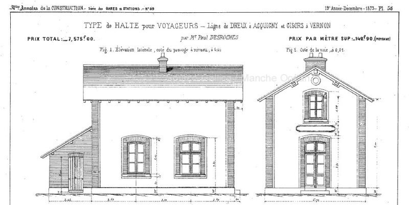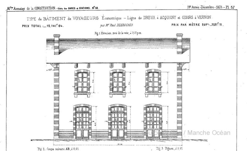 Batiment type pour les gares de la compagnie Orléans Rouen ( Source: Annales de la Construction / Gallica-BNF)