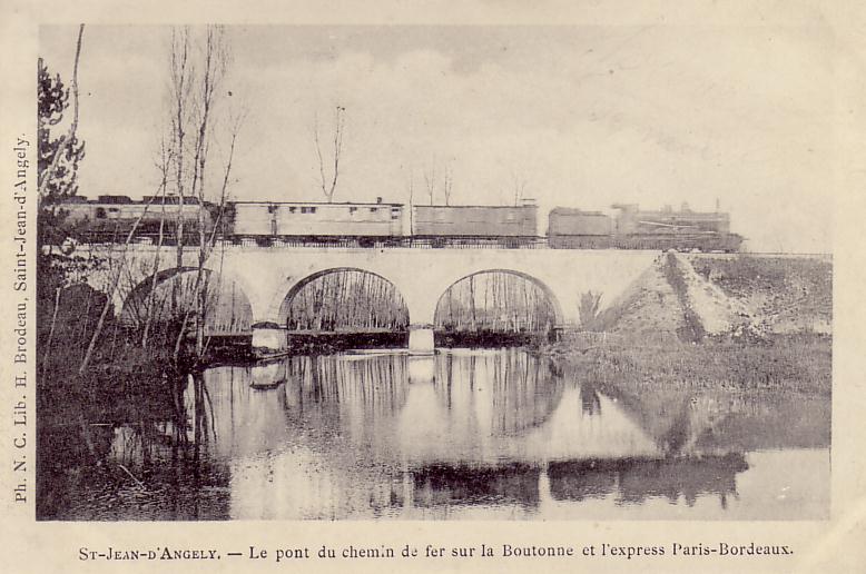 La sortie de St-Jean-d'Angely s'effectue désormais à l'aide d'un pont voute situé au dessus du canal de St Eutrope, puis d'un pont sur la Boutonne composé de 5 arches.