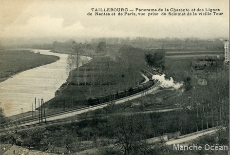Taillebourg voyait passer les trains à destination de Bordeaux jusqu'en 1911, date de la construction de la ligne directe St Jean à Saintes.