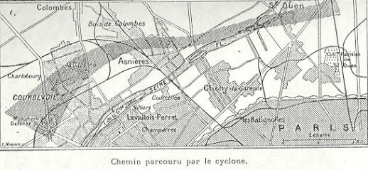 1897: le cyclone du 18 juin43 ans avant l'appel du Général, un cyclone dévaste le Nord Ouest de Paris. Il passe notamment sur les communes d'Asnières et Bois Colombes, et détruit sur son passage l'atelier de la Compagnie de l'Ouest situé à la limite d'Asnières et de Bois - Colombes.