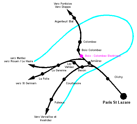 Schéma d'implantation de la gare Bois Colombes Electrique (schéma R.Arzul)