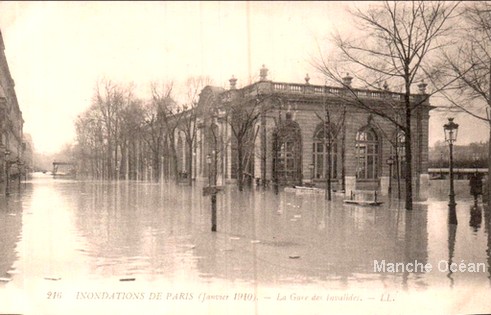 La gare des Invalides sous les eaux en 1910 (coll A.Broyer)