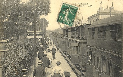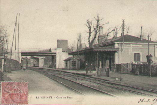 La gare du Vésinet-Le Pecq est reliée en 1847 à Saint Germain par un curieux système dit "atmosphérique", qui consiste en un tube fendu dans lequel glisse un piston. Ce système nécessitait la présence de pompes à vide dans deux stations, et paraissait à l'époque plus adapté pour gravir la pente jusqu'à Saint Germain. L'étanchéité du tube était assurée par des lames de cuir.