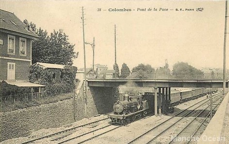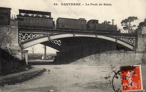 Beau train de banlieue sur le pont biais à Nanterre (coll R.Siettler)
