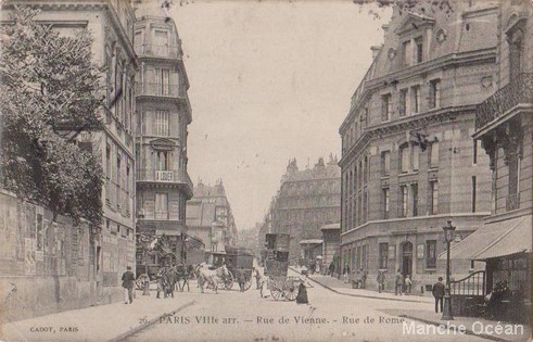 Vue du batiment à l'angle des rues de Vienne et de Rome