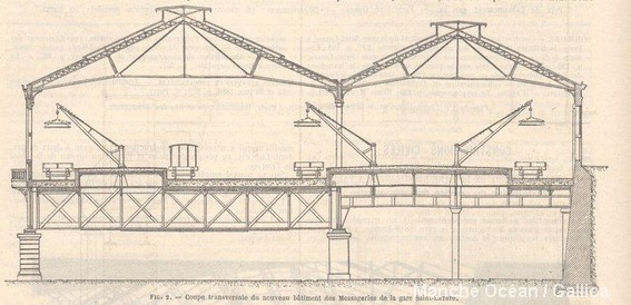 Coupe du batiment de messageries de la gare St Lazare (source Gallica BNF)