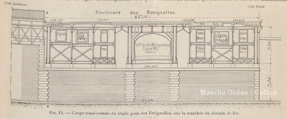 Coupe du pont du Boulevard des Batignolles, avec le passage du Métropolitain (source Gallica BNF)
