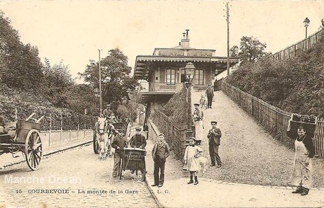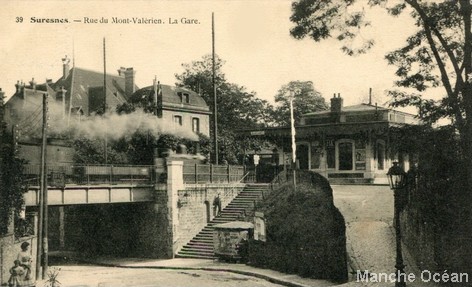 Passage supérieur au dessus de l'actuelle rue Gabriel Peri et café de la gare