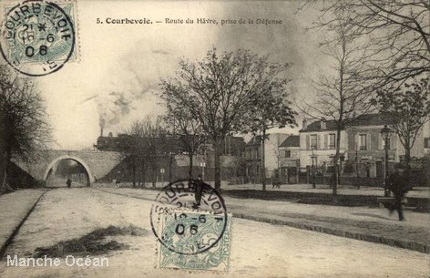 Pont sur la route du Havre pris du rond point de la Défense (avenue de la Mission Marchand ??)