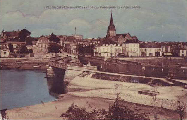 En 1925, le Tramway de la Vendée ouvre le prolongement de la ligne vers Les Sables d'Olonnes. Un pont polygonal est construit sur le Vie, rivière qui sépare Croix-de-Vie et Saint-Gilles, afin de permettre le passage des trains sur une courbe de 64 m. La ligne à voie métrique passait ensuite devant une station de Saint Gilles Plage avant de partir vers les Sables d'Olonnes.
