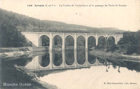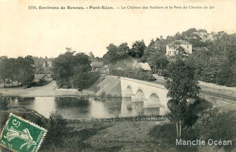(Pont en maçonnerie dit "de Droulin" sur la Villaine) La ligne entre dans le département de Loire Inférieure