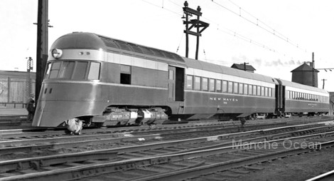 Train à vapeur Besler Blue Goose du New Haven Railroad mise en service en 1934 (Internet).