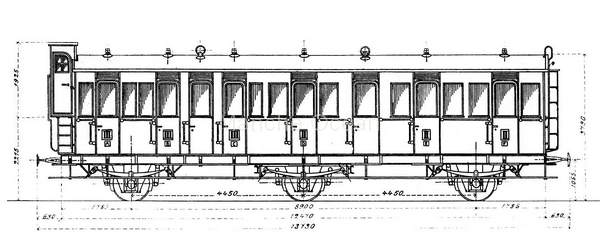 - environ 430 voitures de troisième classe à trois essieux . Ces voitures dont l'essentiel avaient un empattement de 7m à 7.50 avaient un lanterneau avec toit à double pente et une guérite frein fermée. (voir liste en annexe)