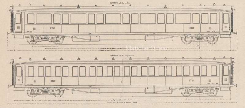 L'État va lancer à partir de 1910 la construction d'un parc important de 342 véhicules de toutes classes. Le matériel sera construit à caisse bois et panneaux de tole, mais les dimensions et aménagements vont s'inspirer fortement des voitures teck de l'ancien Ouest.