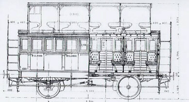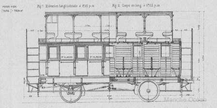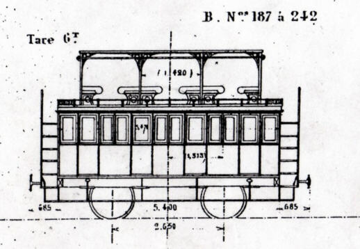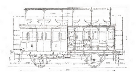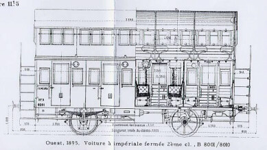 notes: les voitures freinées comportaient une guerite serre frein occupant deux places à l'impériale.