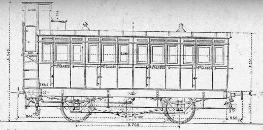 Il existait également une série de véhicules mixtes comportant un compartiment de première classe et deux compartiment de seconde. Dans le grand compartiment de première, les banquettes était disposées le long des parois.
