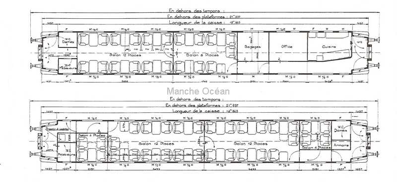 - 10 voitures transat sont conservées pour les services transatlantiques. Il s'agit des A4yfi 301, 304, 306, 309, 310, 311, 315* et 316 puis les A4 301 et 317 retrouvées après guerre. Elles seront transformées en voiture coach selon le meme diagramme que les voitures 318 et 320 passées au Nord avec une capacité augemntée de 32 à 44 places.