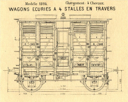Wagon écuries série G 241 à 281 à 4 stalles modèle 1894 de l'Ouest ( coll JM.Jubault)