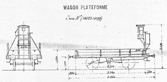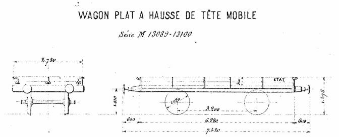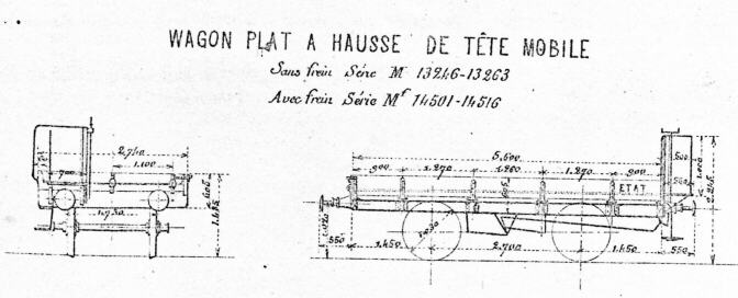 Ces wagons ont été contruits par divers constructeurs pour le réseau de l'Etat un entraxe de 3,5 m pour une longueur hors tout de 7,126 m. Ils ont une tare de 5,5 T pour une charge admissible de 10 T. Ils sont plutot destinés au transport de pierres.