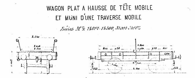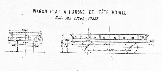 Wagons plateforme à hausse de tête et traverse mobiles série Mtx 14091 à 14500 de 1882 (coll JPVL)