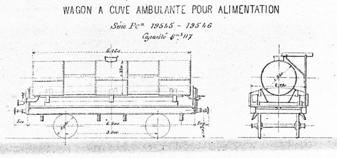 - 2 wagons construits par les Cahntiers de Provence en 1908 avec entraxe de 3,75 m. Ils tarent 21 T et sont immatriculés Ngx 14601 t 14602
