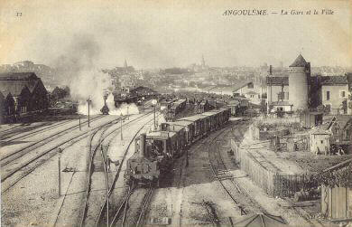AngoulèmeAngoulème possède la particularité d'avoir connu deux gares faces à faces, celle du PO et celle de l'ancienne Compagnie des Chemins de fer des Charentes, concédées plus tard à l'Etat.