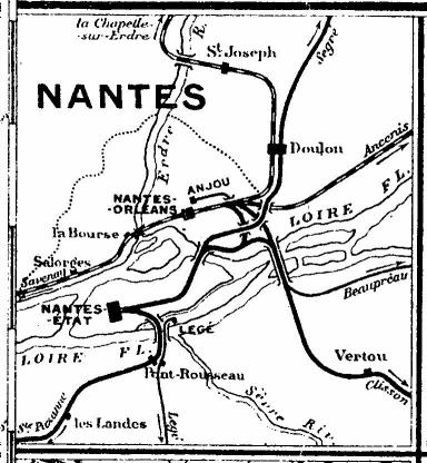 Le plan de voies de la ville de Nantes était particulièrement complexe. Au Nord de la ville passait la ligne du PO, avec la gare de Nantes-Orleans commune avec le petit Anjou. De cette gare partait une ligne à voie unique en direction de Savenay puis Saint Nazaire. Cette voie passait par la gare de la Bourse située en plein centre ville.