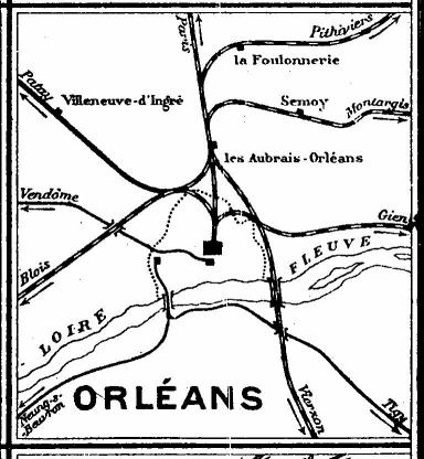 OrléansOrléans est le point de rencontre des lignes du Paris-Orleans et de l'Orleans-Rouen. Cette dernière compagnie a été concédée au réseau de l'Etat.