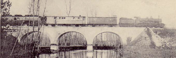 Le rapide Paris-Bordeaux dans la Beauce, au début du XXème siècle, tracté par une "Atlantic" série 2950 et composé de voitures Polonceau à essieux. (coll L.Fournier)
