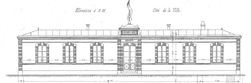 Station de la Ferté Bernard telle que construite. On note des simplifications dans la réalisation: fenêtres de l'étage droites,