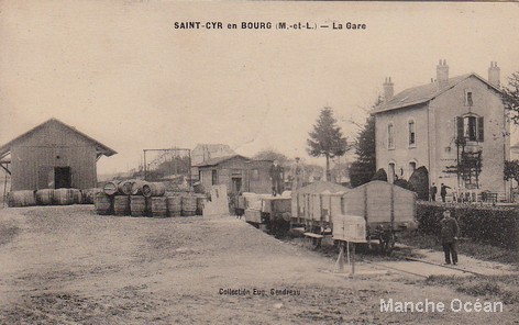 Saumur Rive gaucheLe point de départ de la ligne vers Poitiers s'effectuait en gare de Saumur Rive Gauche, situé au sud de Saumur. La gare accueillait également le chemin de fer du petit anjou, à voie métrique, dont les voies venaient devant le batiment voyageur.