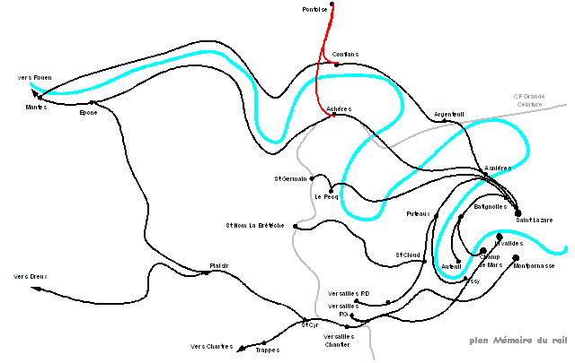 Peu avant Pontoise, la ligne s'embranchait sur la ligne de la Compagnie du Nord, puis franchissait à nouveau l'Oise