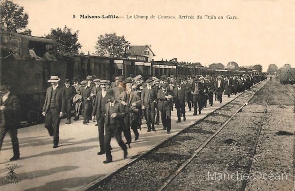 Pour desservir le champ de courses, les Chemins de fer de l'Ouest établissent une voie spéciale en gare de Maisons-Laffite en 1882. Mais le champ de courses est éloigné de la gare et cette solution n'est pas adaptée à une ligne déja fréquentée par le trafic banlieue et grandes lignes qui transite par cette gare.