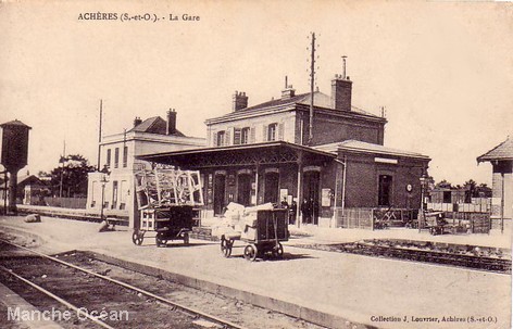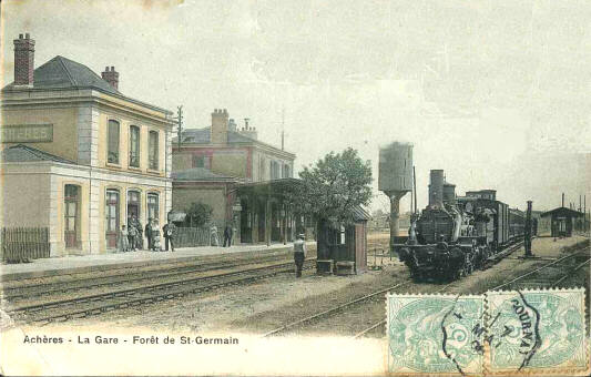 La ligne de Paris à Mantes par Achères a été construite en 1841 dans le cadre de la ligne de Paris à Rouen. La ligne de Paris à Mantes était également desservie par les trains de banlieue. Les trains de voyageurs circulent à partir du 9 mai 1843.