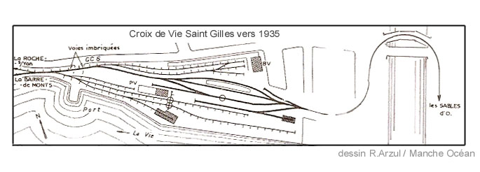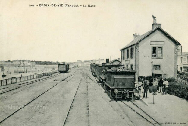La gare métrique de Croix-de-Vie est alors installée derrière les installations de l'État, et comporte une voie d'évitement.