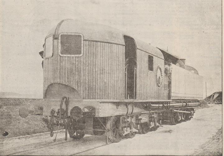 Une vapeur électrique du réseau de l'Ouest en 1893. L'engin de 125 tonnes doit théoriquement développer 1000 ch aux roues. Cependant la capacité réduite des caisses à eau des locomotives nécessite l'ajout d'un fourgon disposant de 20 m3 d'eau supplémentaire, afin de réaliser des parcours de 3 heures comme les machines classiques. L'ensemble loco + fourgon pese alors 170 tonnes, contre 80 tonnes pour une machine classique.