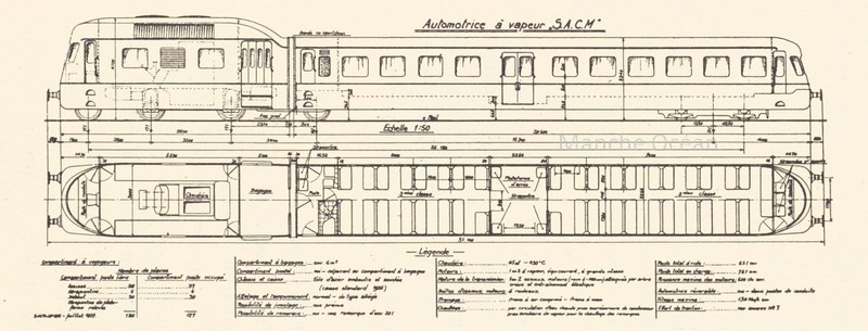 Pour être complet, il faut ajouter les projets de la SACM. Dans un article paru en janvier 1939, ces projets sont présentés avec notamment un autorail à vapeur. L'autorail comprend une motrice portée sur trois essieux. Elle comprend un poste de conduite, une chaudière rapide de type La Mont, des élements de condensation en partie haute, un compartiment à bagages de 6 m2. La remorque attelée en permancence est portée par un essieu coté motrice, un bogie à l'autre extrémité. la conduite est possible à partir de la remorque, qui comprend 97 places assises réparties dans deux salles, séparées par un accès central.