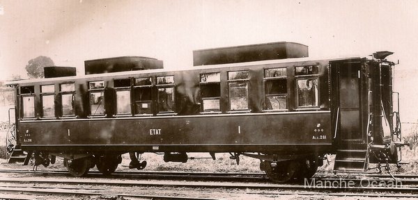Afin de permettre aux voyageurs des trains rapides d'accéder à la voiture-restaurant, l'État fait construire à partir de 1897 des voitures semi-métalliques à intercirculation. Le retour au matériel à essieux, alors que l'État a déja fait construire du matériel à bogies en 1888 - les voitures "Parent" - peut surprendre, mais s'explique par le manque de locomotives suffisamment puissantes pour tracter ce matériel remorqué lourd.