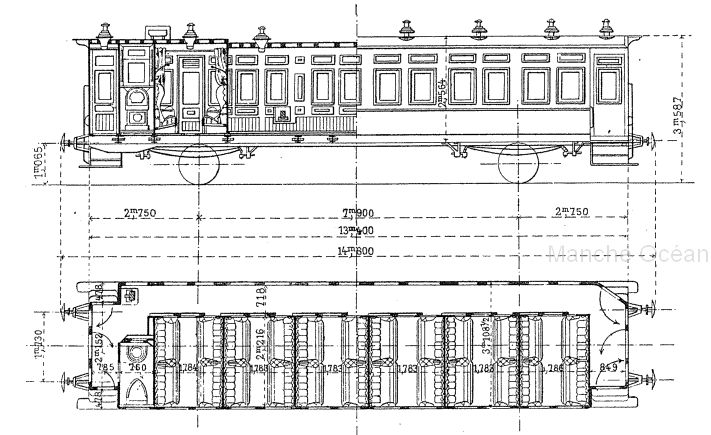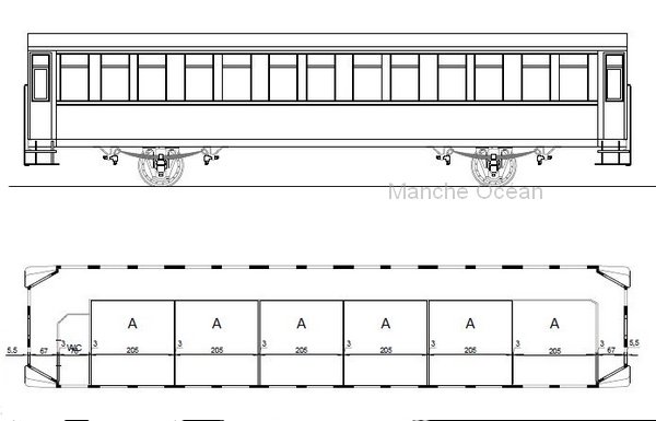 Diagramme des voitures type Az 201 à 206 de 1905 (infographie JD)