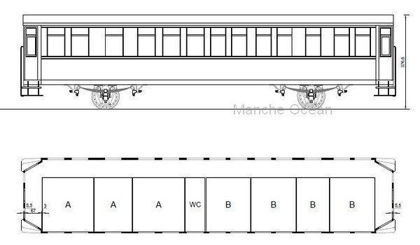- 2 voitures Az 288 à 289 à cinq compartiments, Les compartiment int des dimensions de 2,16 m x 2,186 m,