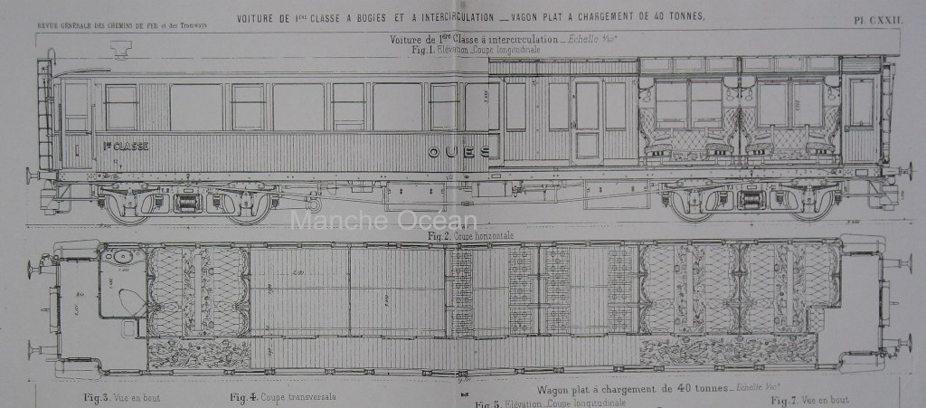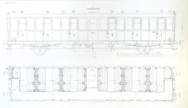 Plan des voitures A7 de 1899 en état d'origine avec bogies CIWL (coll R.Arzul)