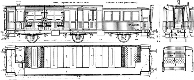 Après avoir modifié d'anciennes voitures à compartiments en voitures à couloir partiel, la compagnie de l'Ouest va completer son parc grandes lignes par du matériel à intercirculation permettant aux voyageurs d'accéder à la voiture restaurant. Parmi ce matériel on trouve les très esthétiques voitures en teck.