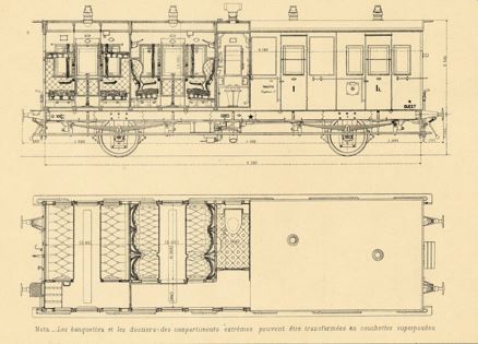 À l'origine, les 21 voitures 2335 à 2355 ont les deux compartiments extrèmes disposés de façon à se transformer en 4 couchettes, les assises formant couchettes inférieures et les dossiers formant couchettes supérieures. Deux armoires situées aux extrémités des couloirs recoivent chacun les oreillers et un escabeau.