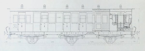 Diagramme des voiture Ouest à couloir partiel A 2335 à 2358 de 1893-1896 (coll R.Arzul)
