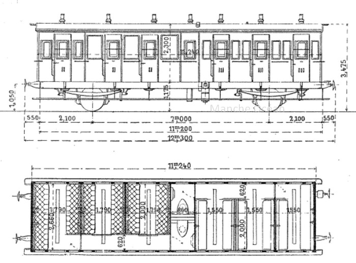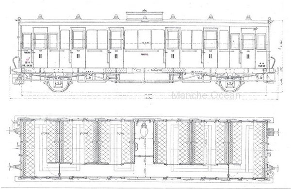 Cette série de 12 voitures de seconde classe a été construite par les ateliers de l'Ouest en 1903.