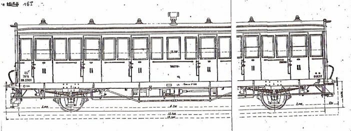 - AAl 3503, construite par les ateliers en 1906. Elle recevra ultérieurement une rehausse partielle de la toiture au niveau des compartiment 2 et 3 aménagés en couchettes. Cette disposition augmentait l'accessibilité des couchettes supérieures. Elle a un entraxe de 8,1 m pour une longueur de 13,0 m. Elle est renumérotée A5c2t 209 puis A2B3t 3801