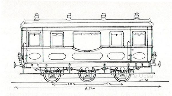 Il s'agit d'une voiture salon, de 8,51 m de longueur hors tampons, et montés sur trois essieux de 4,1 m d'empattement maxi. Elle pèse 11 tonnes. La caisse fait 2,65 m de largeur.
