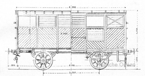 Cette importante série de 154 wagons provient de l'Orléans - Rouen. Elle a été construite vers 1873-1874.